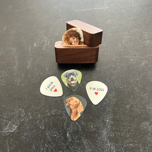 The guitar pick was high quality and exactly what I was hoping for! The case was super cute and the artist/owner was very kind and responsive. Highly recommend!