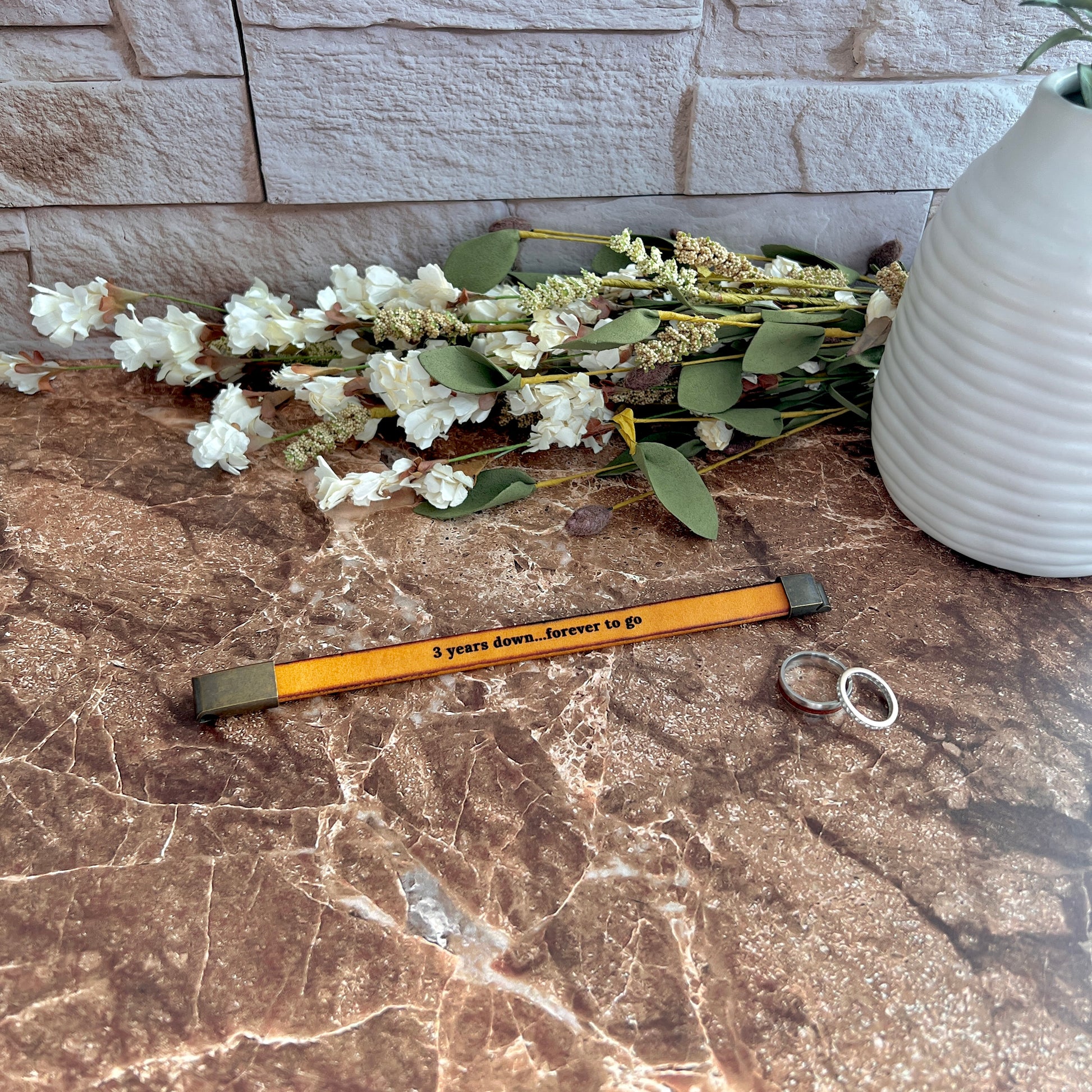Leather is the traditional gift for the 3rd wedding anniversary. This bracelet is a wearable way to mark that milestone — personal, lasting, and something they’ll reach for every day. Also a thoughtful gift for birthdays, Christmas, Valentine’s Day, or just because.