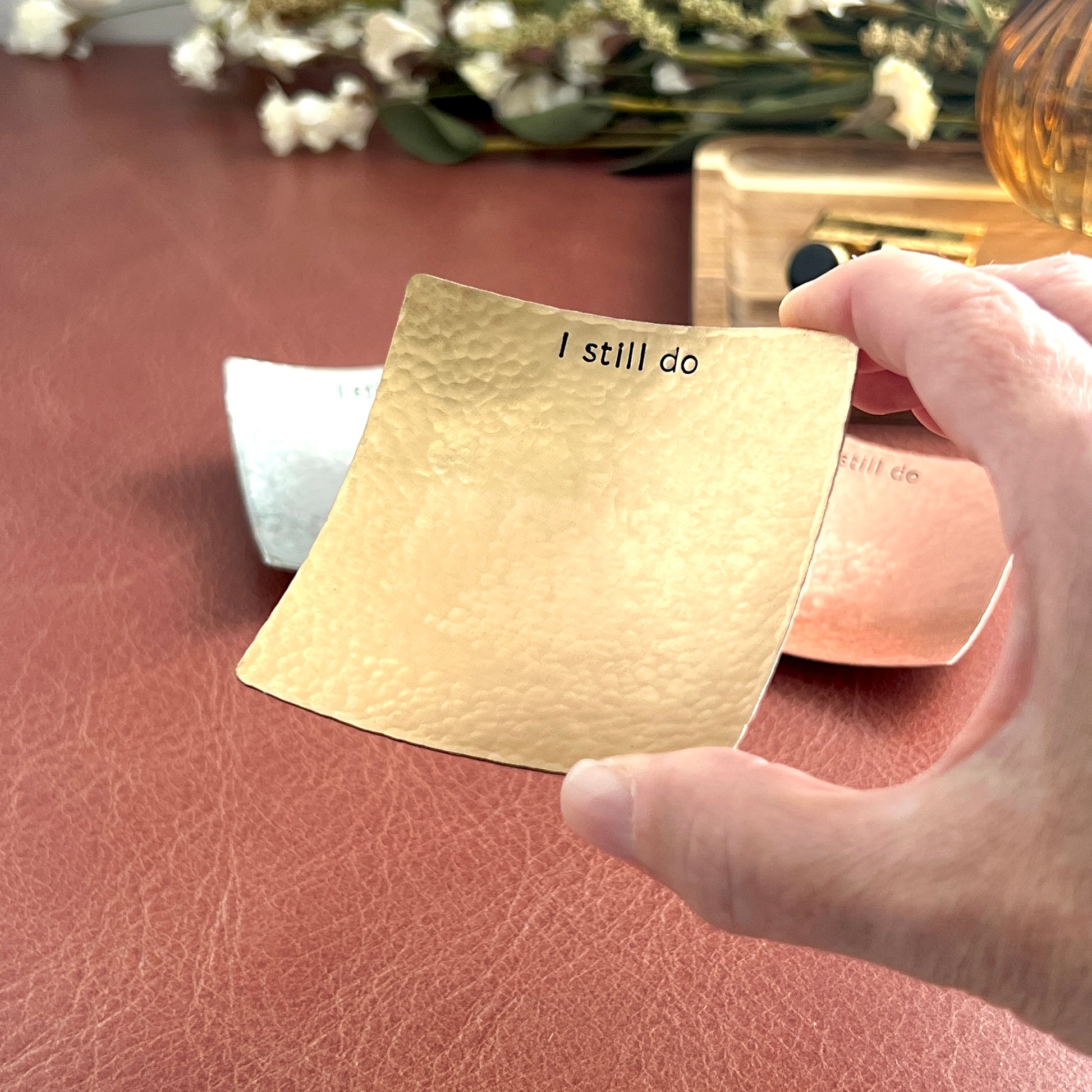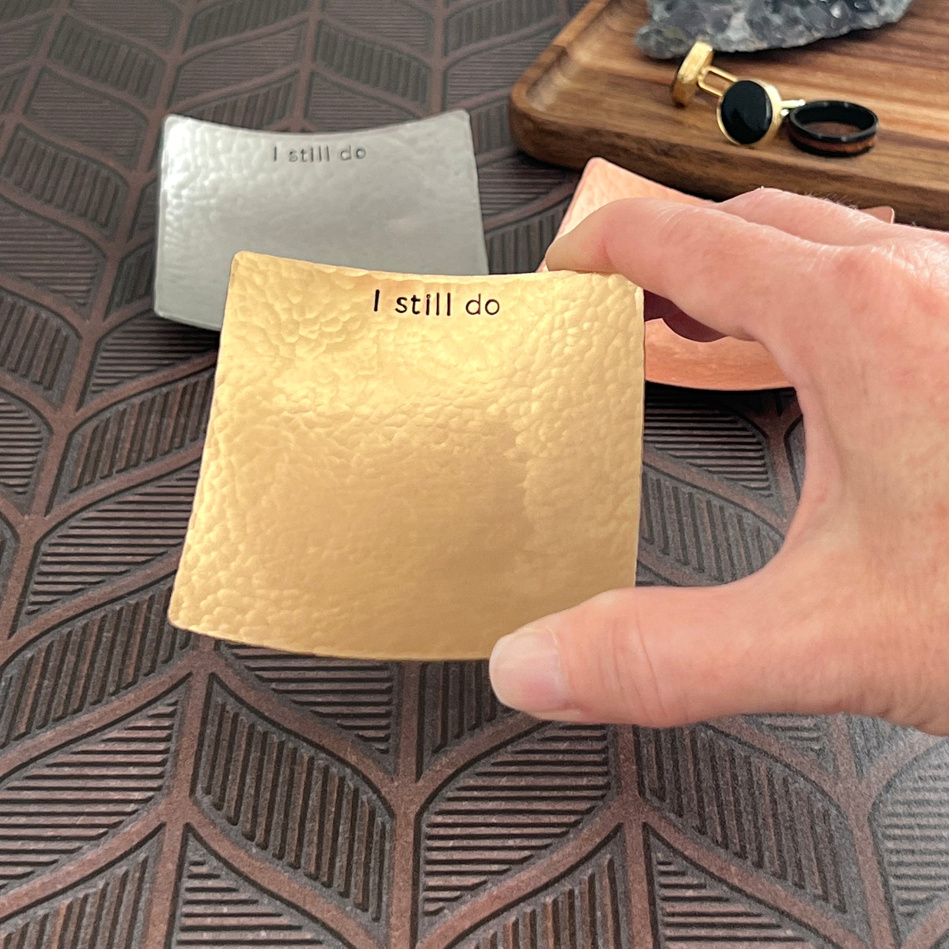 • Three style options - hammered, hammered with I still do, or hammered with custom text